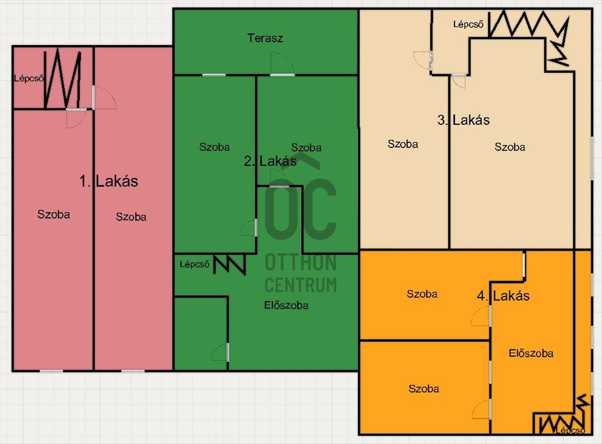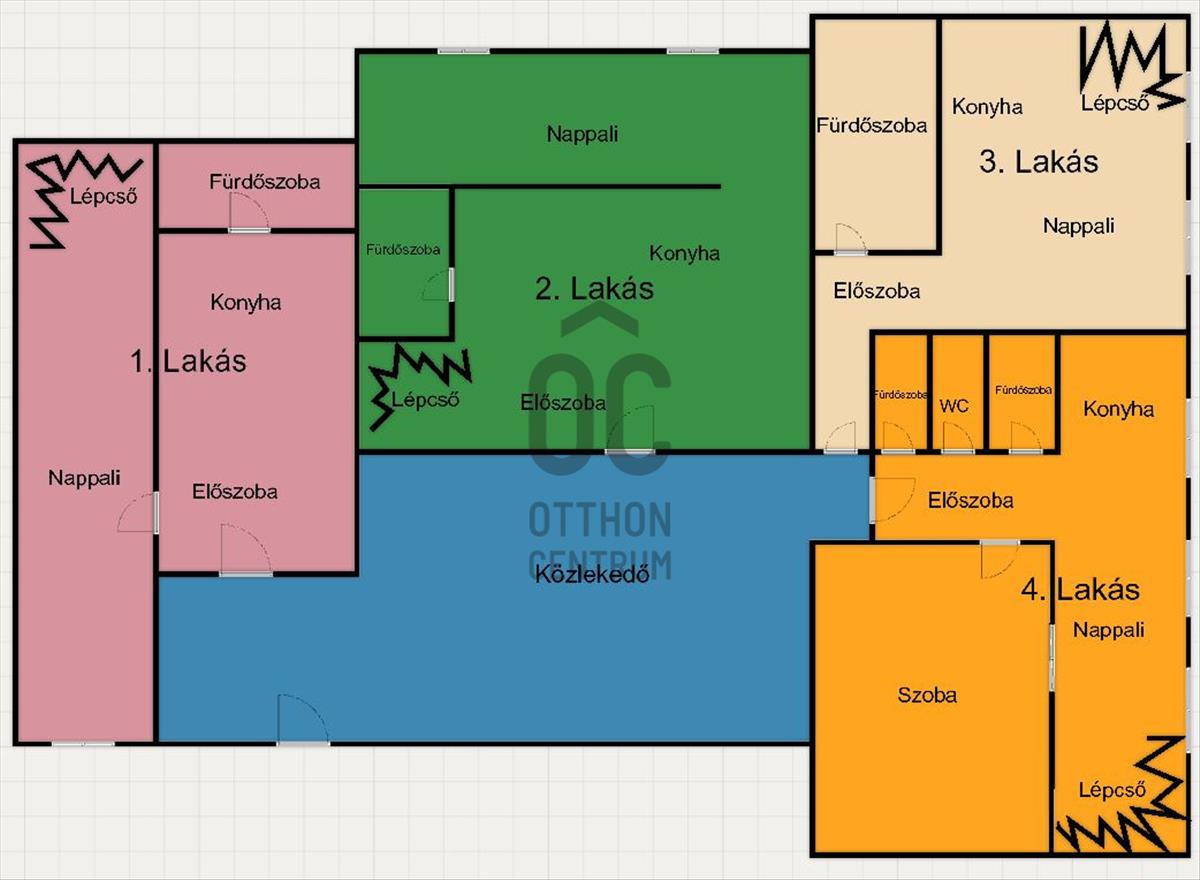 Az első lakás 48, 85 m², a második 72 m², a harmadik 54, 6 m², míg a negyedik 79, 6 m² alapterületű. Mindegyik lakás külön bejárattal, saját nappalival, konyhával és fürdőszobával rendelkezik, klimatizált, a fűtést pedig gazdaságos gázcirkó biztosítja. Az ingatlan műszakilag teljes körűen felújított: új villanyhálózat, vízvezetékek és csatornarendszer került beépítésre, így minden megfelel a legmagasabb modern elvárásoknak.