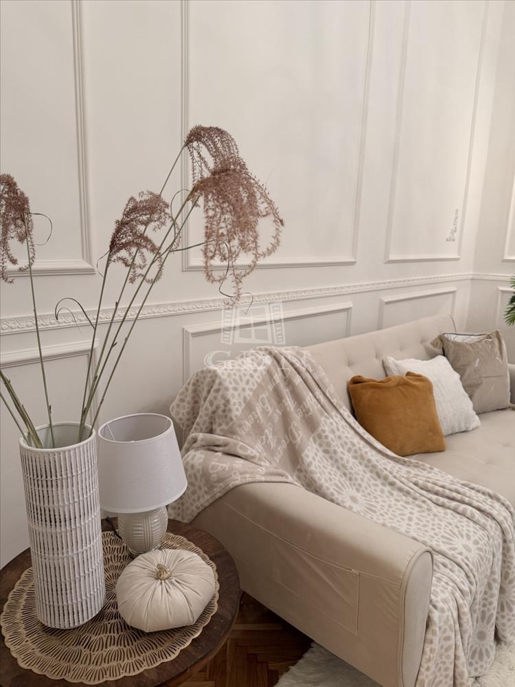 A lakás tágas belmagassággal, elegáns stukkókkal, halszálkás parkettával, valamint hangulatos elektromos kandallóval rendelkezik. a nagy méretű ablakok bőséges természetes fényt biztosítanak. a modern komfortot hűtő-fűtő klímaberendezés szolgálja. Az ingatlan azonnal költözhető.