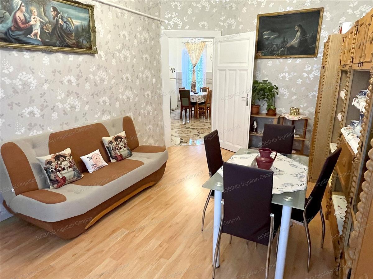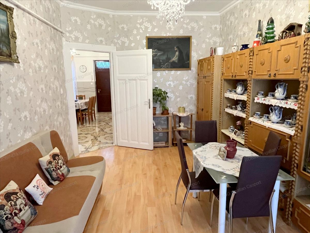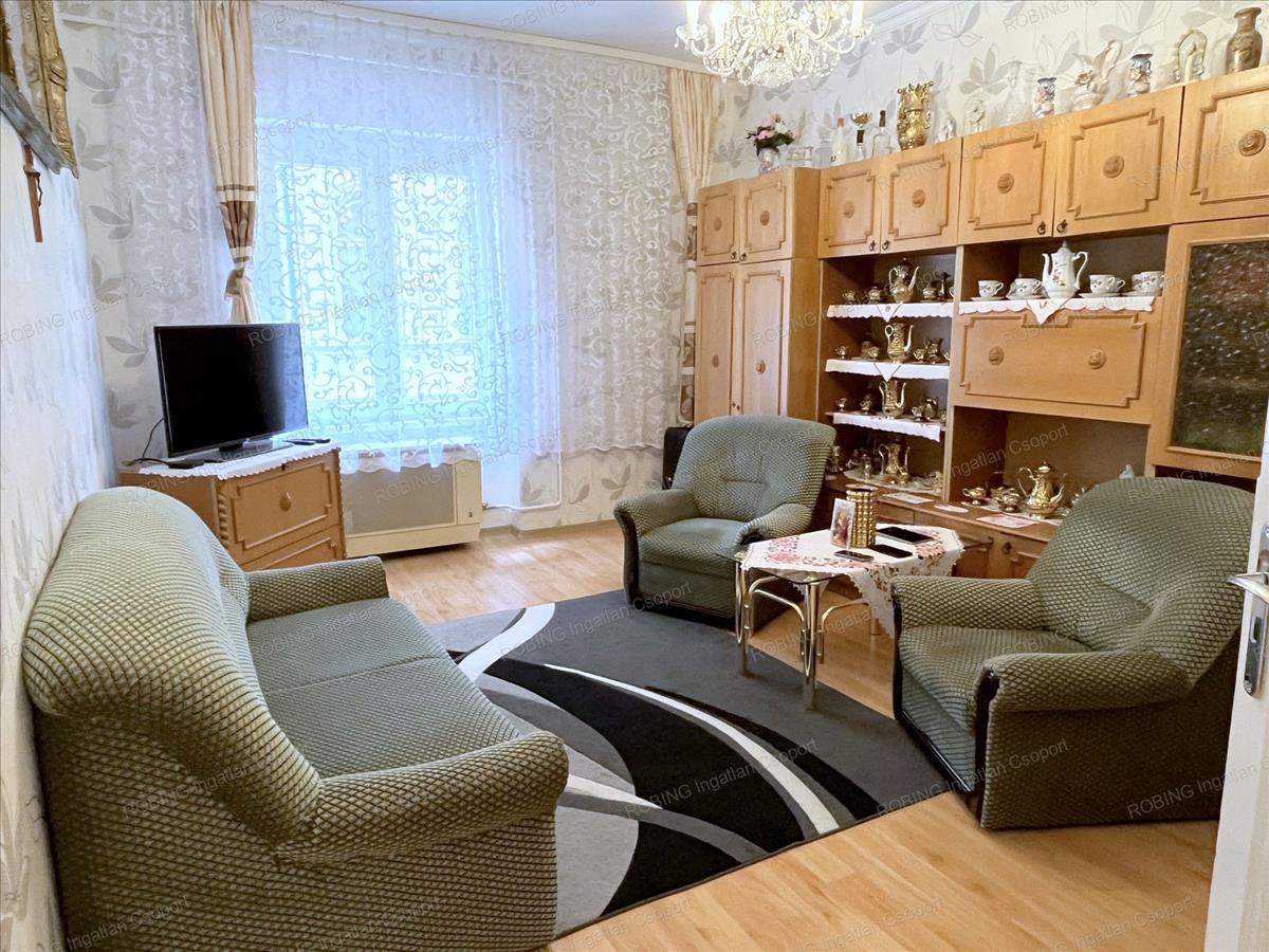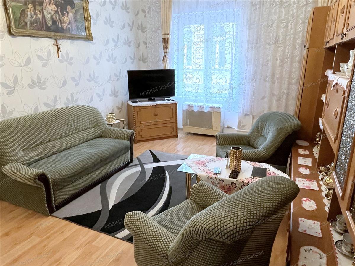 Az ingatlan, egy három emeletes, kívül-belül jó állapotú, kulturált Társasház első emeletén helyezkedik el. Két azonos méretű tágas szobája, nyugati tájolással az utcára néz. a felújítás során az összes külső nyílászáró, a víz- és villanyvezetékek, a fűtőtestek, a burkolatok és szaniterek is teljesen megújultak. a konyhában található gépesített konyhabútor, valamint a fürdőszobabútor a vételár részét képezi.