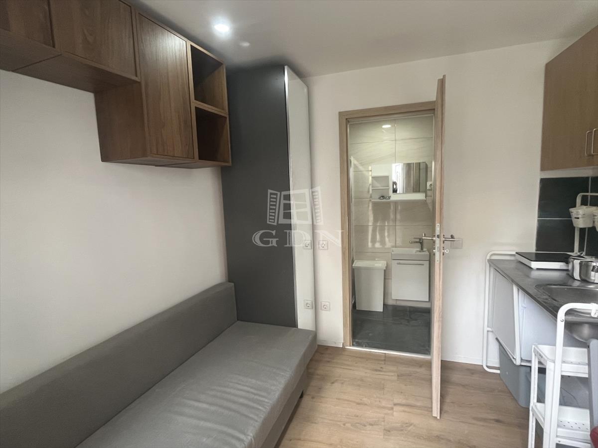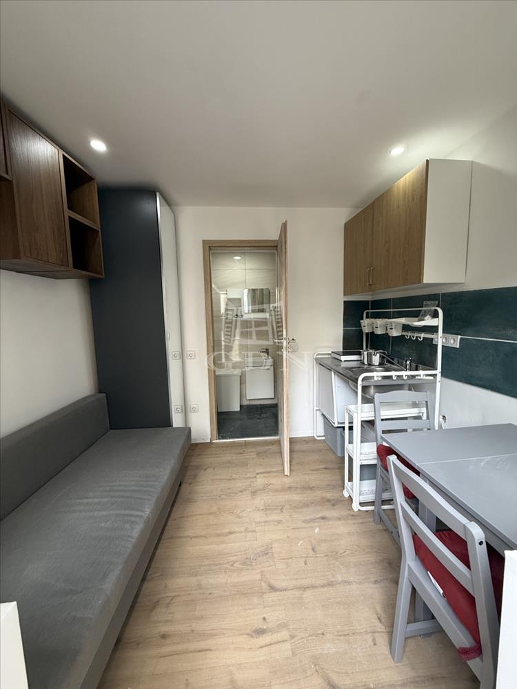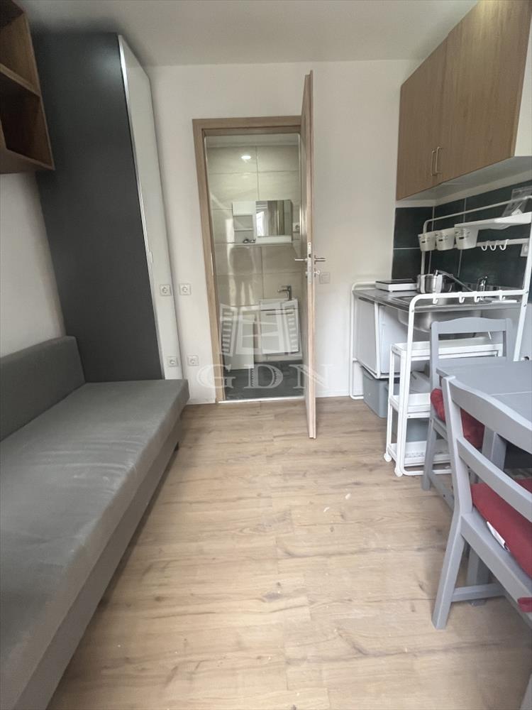 A tér maximálisan kihasznált: egy kis konyha étkezőasztallal, ahol kényelmesen elfogyasztható a reggeli kávé, valamint egy kanapé, amely estére ággyá alakítható, így nappal tágasabb, este pedig kényelmes pihenőtérré válik a lakás. a fürdőszobában modern walk-in zuhany került kialakításra.