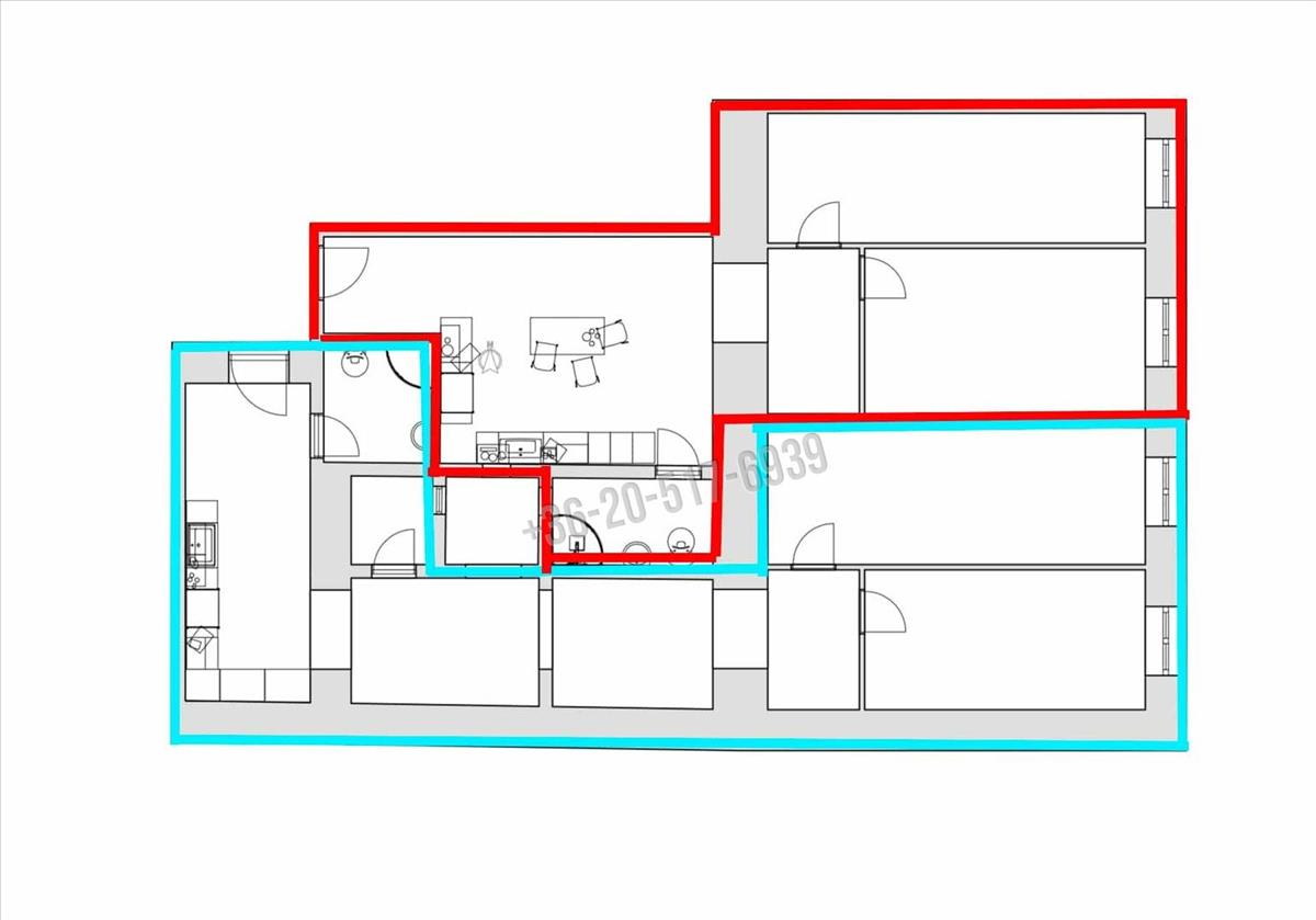 Az ingatlan elosztása kitűnő, előszobával, 2 egész szobával, egy hálófülkével, egy konyhával, egy fürdőszobával, egy WC-vel és 2 db állógalériával rendelkezik. Az alaprajz igény szerint alakítható, akár két külön bejáratú lakást is tervezhet az új tulajdonos.