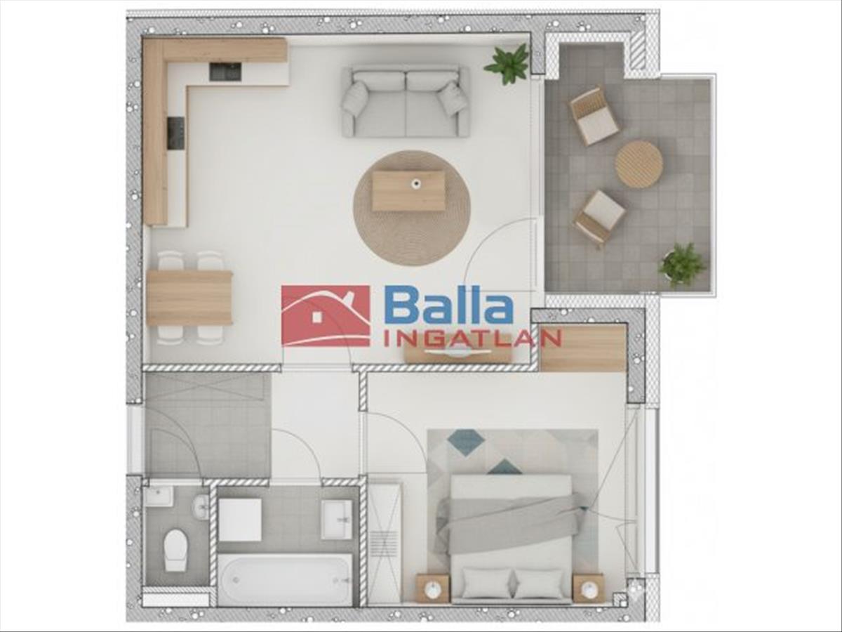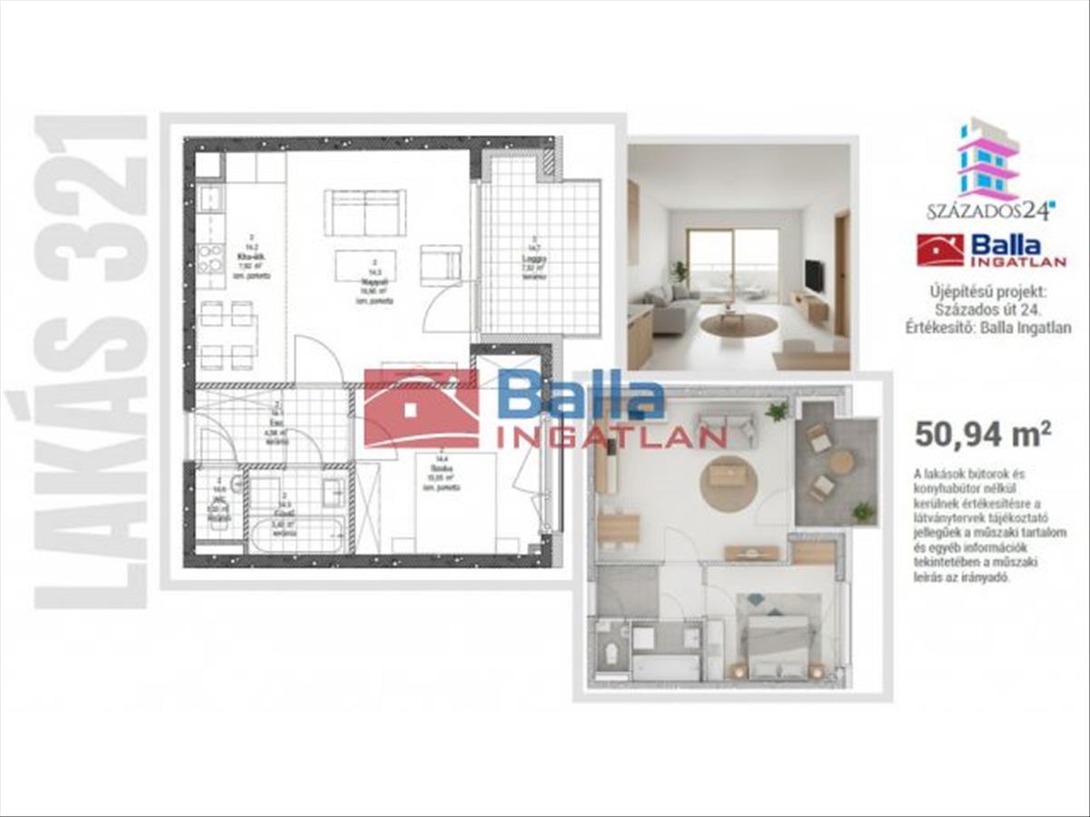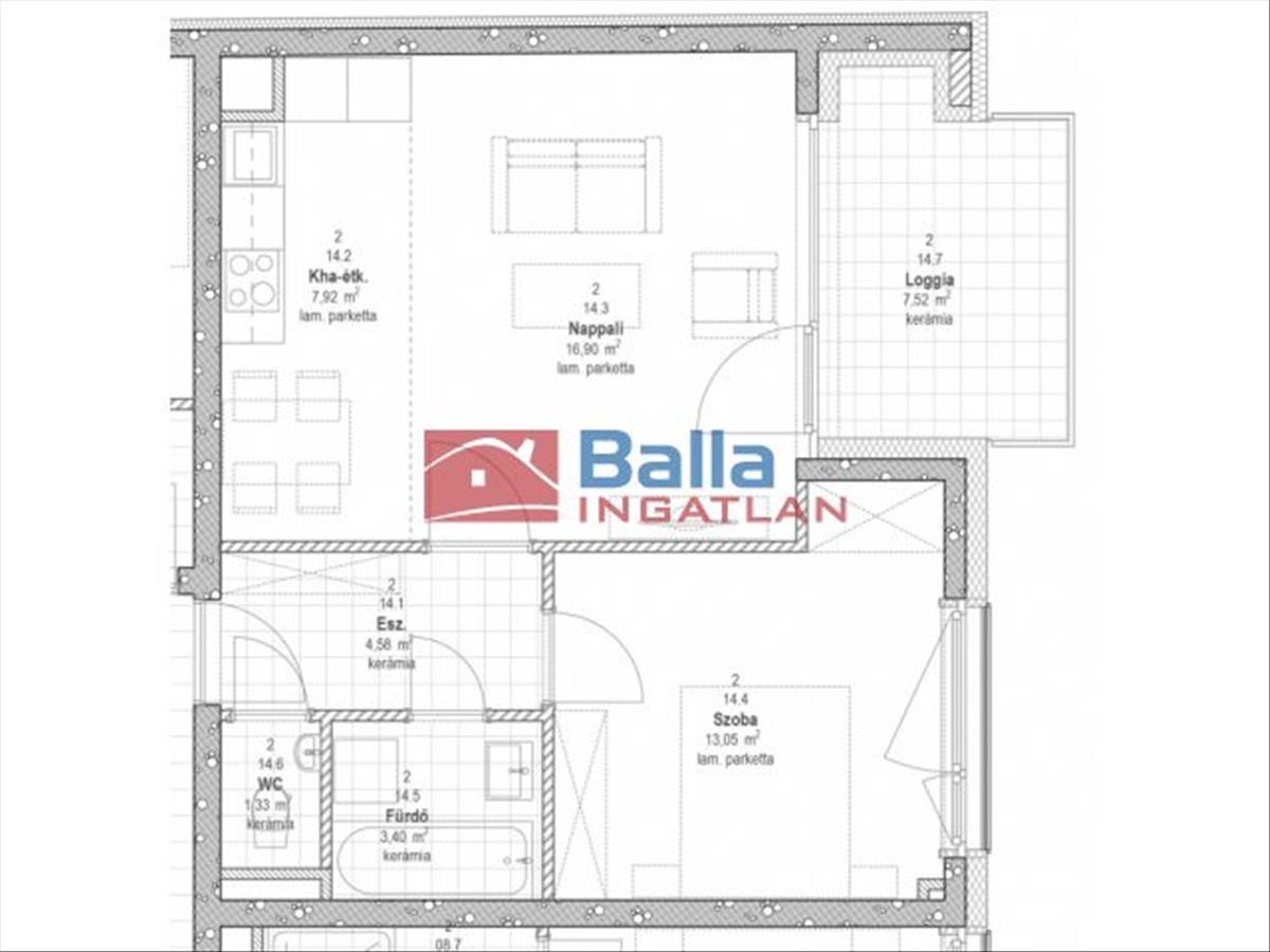 321 Lakás - 47, 18 nm + 7, 52 nm erkély.