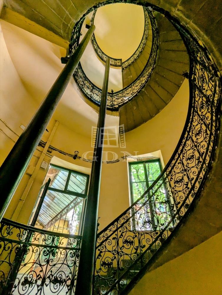 Az ingatlan egy 1880 körül épült, eklektikus-neoklasszicista társasház első emeletén található, vastag falakkal, hatalmas belmagassággal (4, 6 méter! ), És egyedi, köríves alaprajzi megoldással. a ház tágas, zöld belső udvara hangulatos, fákkal és bokrokkal övezett oázis a város szívében. a jelenlegi tulajdonosnak ritka lehetőségként saját kocsibeálló része is van az udvarban.
