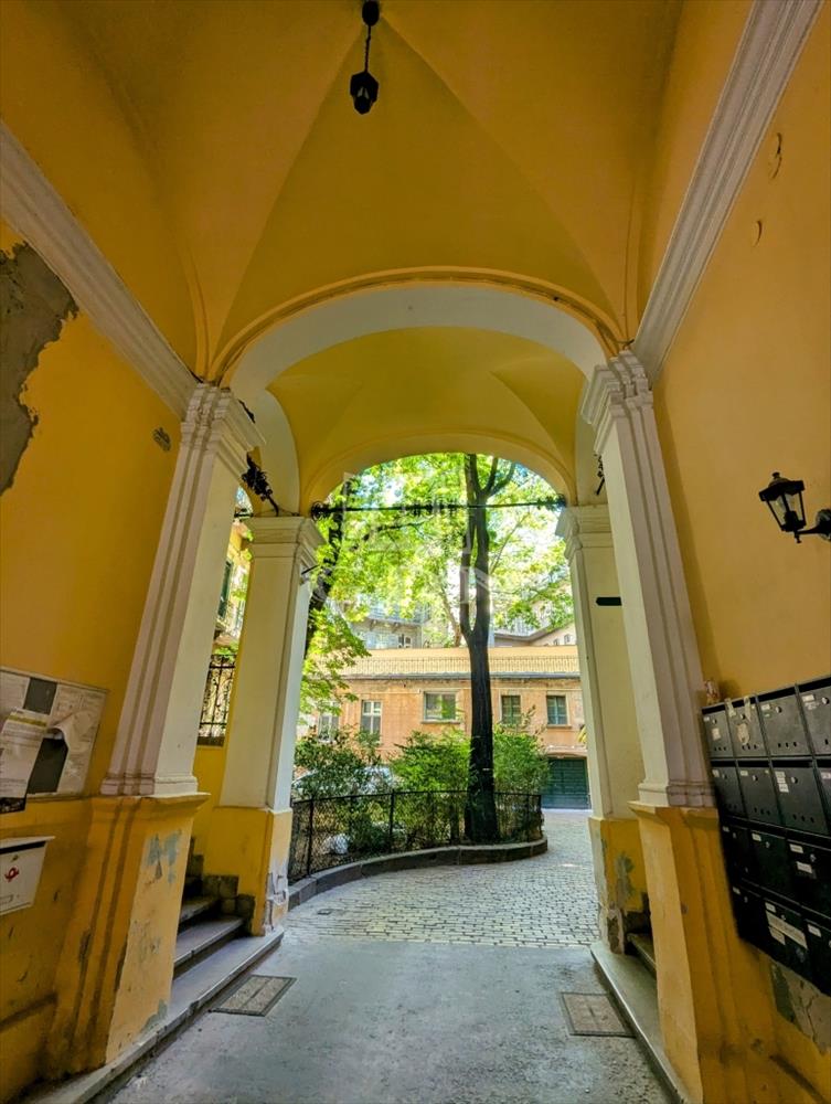 This charming property is located on the first floor of a historic eclectic–neoclassical building dating from around 1880, featuring thick brick walls, impressive ceiling height (4. 6 M! ), And a unique curved interior layout. The building surrounds a large inner courtyard filled with mature trees and greenery — a peaceful oasis in the heart of the city. a rare bonus is a private on-site parking space, which belongs to the current owner.