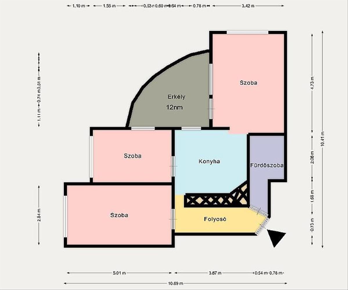 A lakás alapterülete 61 nm , amelyhez egy tágas, 12 nm -es erkély tartozik, ahonnan gyönyörű panorámás kilátás nyílik.