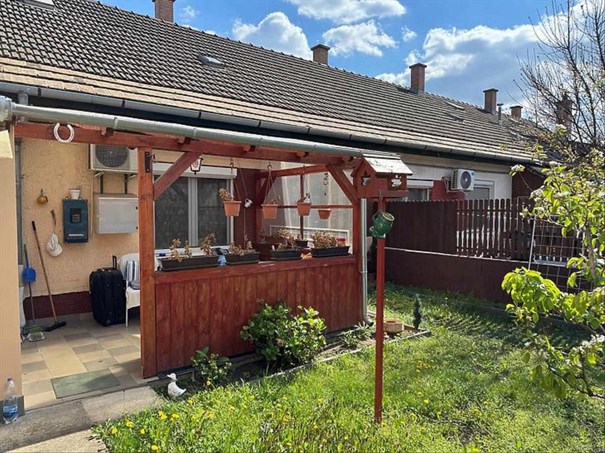 A nagyjából 40nm -es, lekerített, rendezett kertben található egy tároló, valamint biztosítja egy saját kert minden további előnyét.