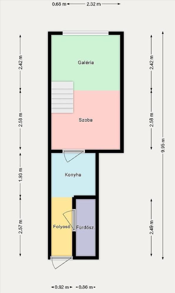 A praktikus galériának köszönhetően a tér jól kihasználható, ideális első lakásnak vagy befektetésnek is.