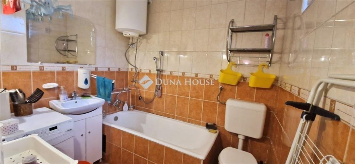 A kádas fürdőszoba kényelmet biztosít, a kis előtérben gardróbszekrény is elfér, így a tárolás megoldott. a lakáshoz saját tároló is tartozik, ami nagy előny.