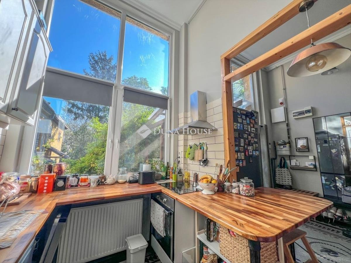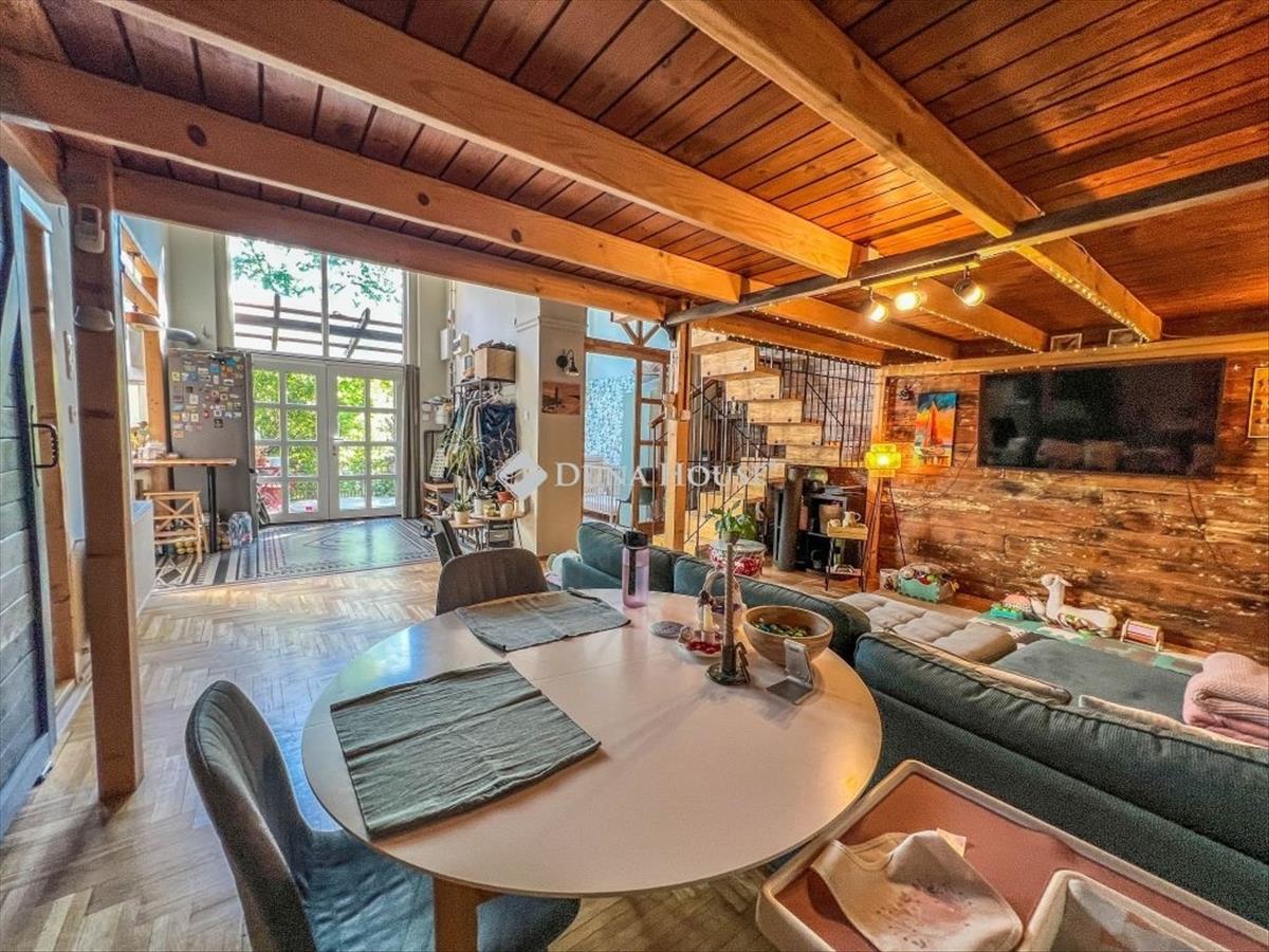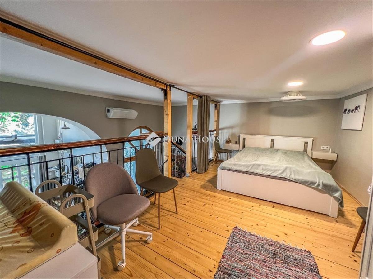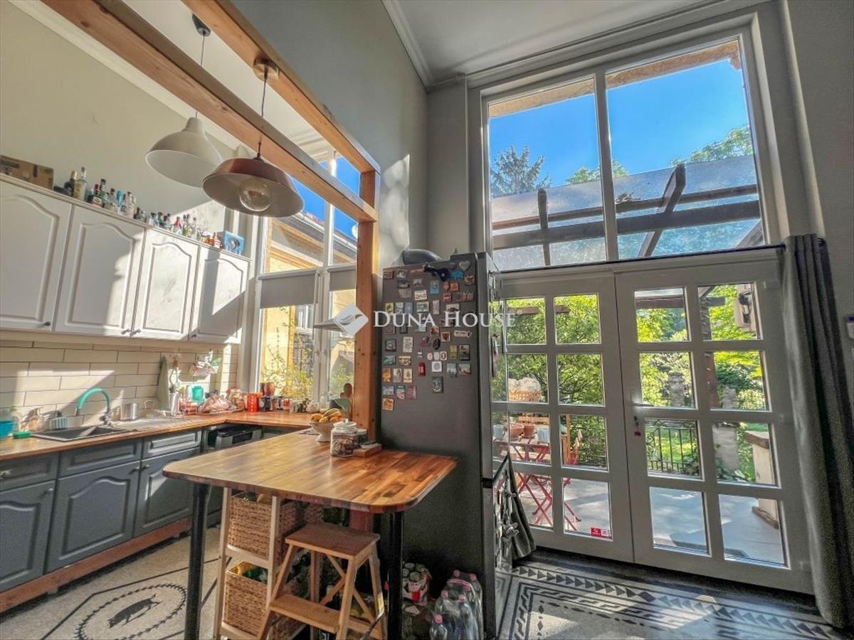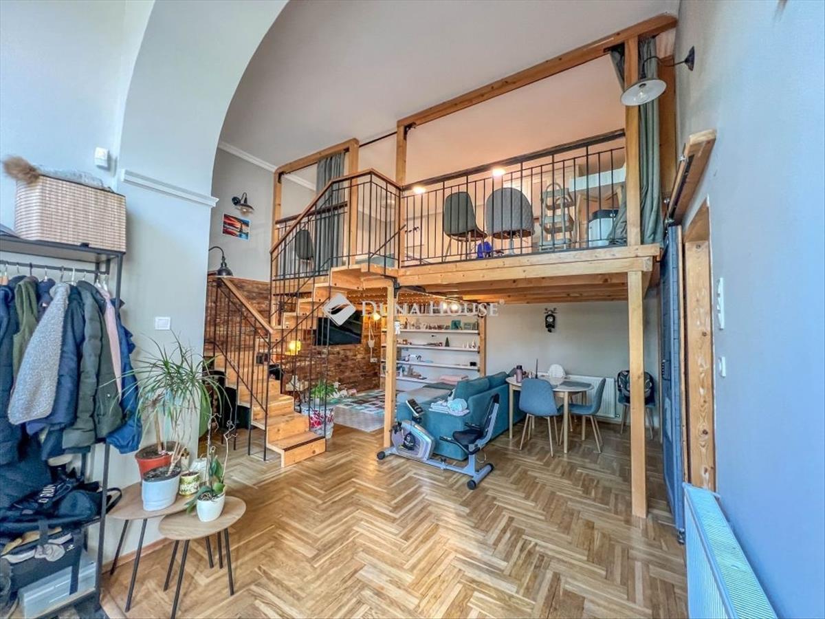 A lakás a ház belső kertjére néz ami az utcától teljesen elszigetelt, illetve lakásnak sincsen utcafrontot érintő oldala. a bejutás a lépcsőn megközelíthető fedett teraszról lehetséges, az ingatlant a loft jellegű elrendezés és nagy terek jellemzik, a belmagassága pontosan 4 méter, az elosztása pedig kiváló, az alsó szint áll egy előtérből, egy közel 30 nm nagyságú szobából, ahol egy nappali és egy étkező is helyet kapott, egy gyerekszobából, konyhából, külön fürdőből és WC-ből és tároló szobából. a felső szinten egy szoba és egy gardróbhelyiség került kialakításra. Az ingatlanhoz tartozik egy 6. 5 Nm-es fedett terasz, egy 6 nm -es saját tároló, egy 15 nm -es könnyűszerkezetes garázs valamint a lakás feletti kb. 60 Nm-es padlásrész, továbbá egy kb. 500 Nm méretű kizárólagos használatú kertrész is.