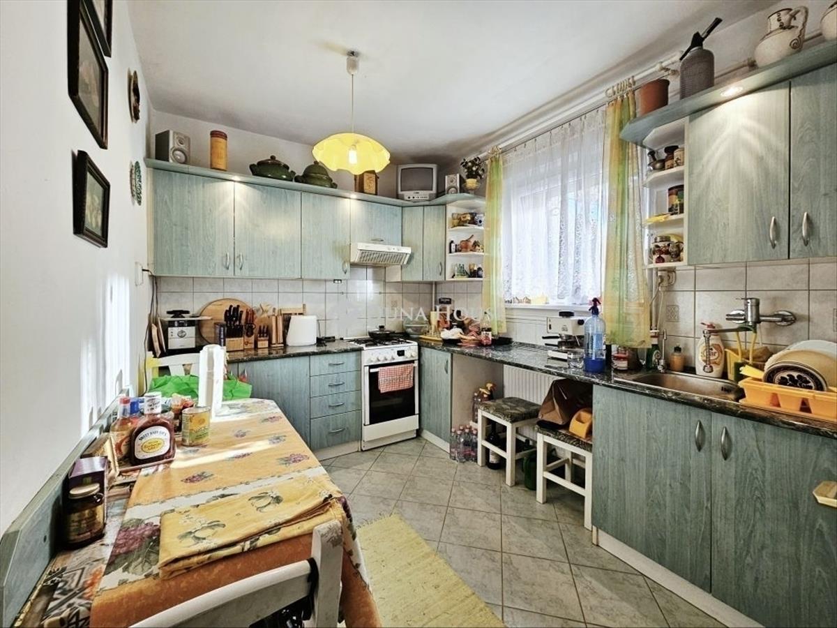 A vételár tartalmazza a gépesített konyhabútort, a mosógépet és a hűtőt, valamint egy saját, pinceszinti tárolót is.
