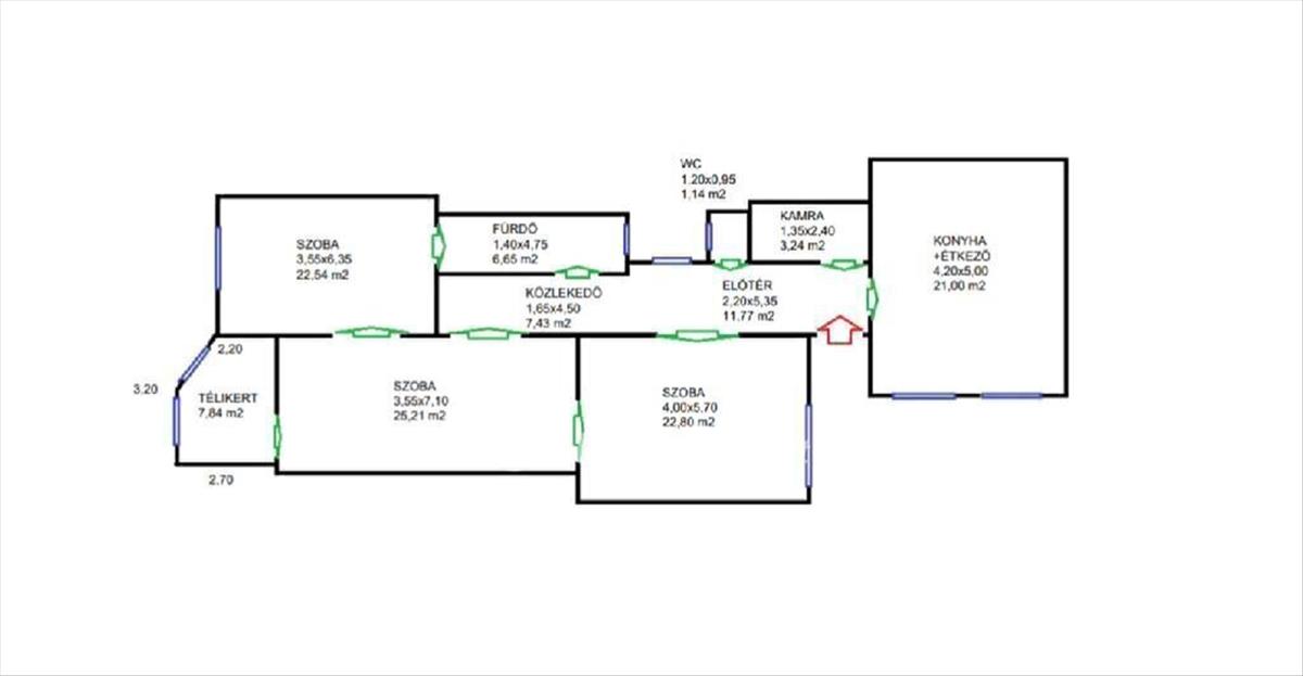 Az alaprajz több lehetőséget kínál, akár két külön lakás kialakítása is megoldható, illetve minden szoba külön nyílóvá tehető.