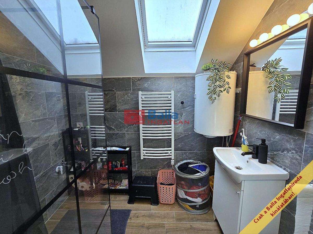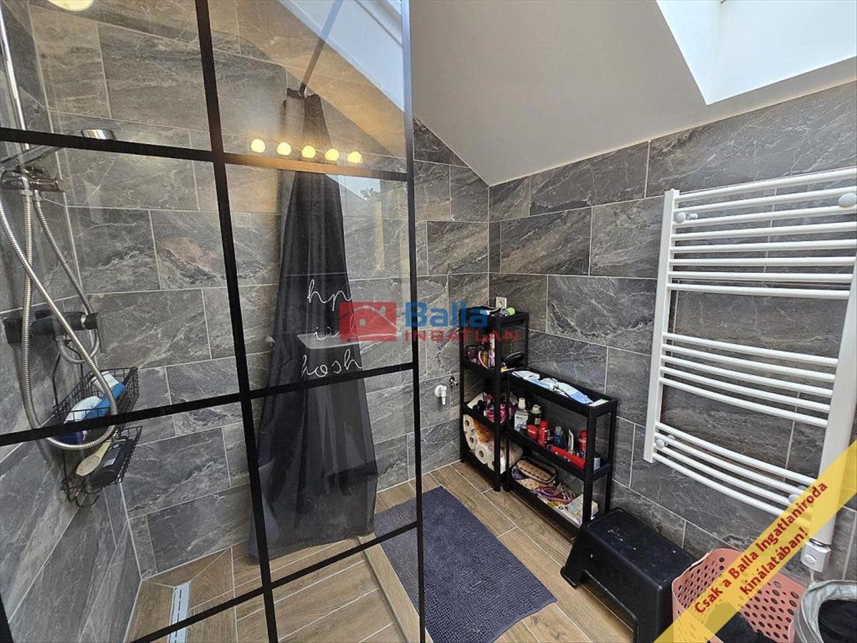 -Az emelet nemrégiben került beépítésre, kifejezetten modern, korszerű. Jól elszeparált az alsó szinttől. Igényes kialakítású fürdőszoba, modern, fiatalos nappali és hatalmas, 50 m2-es tetőterasz tartozik hozzá.