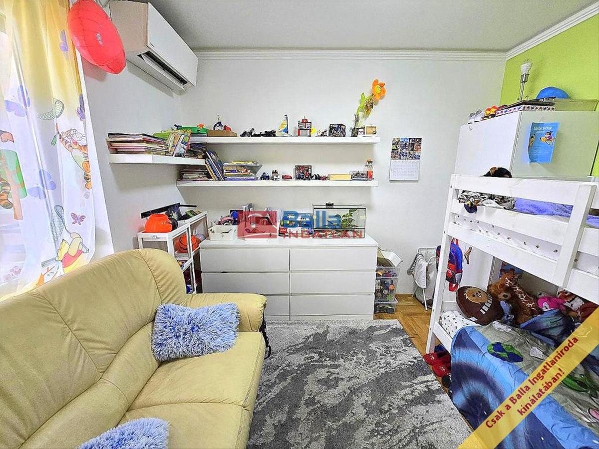 -Az alsó szinten nappali + 2 hálószoba, világos, ablakos konyha, fürdőszoba, külön wc, valamint 8 m2-es erkély található.