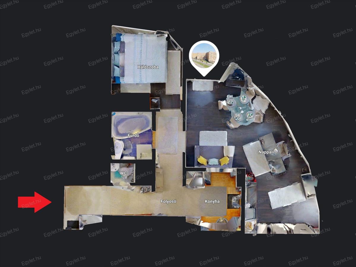 •Kiváló felszereltség: 54 m²-en tágas előszoba (beépített szekrényekkel), gépesített konyha, sarokkádas fürdő, külön wc, nappali és hálószoba várja az új tulajdonost.