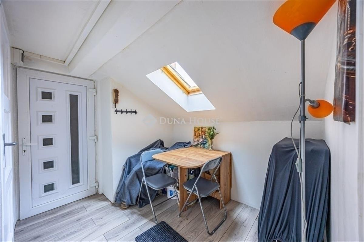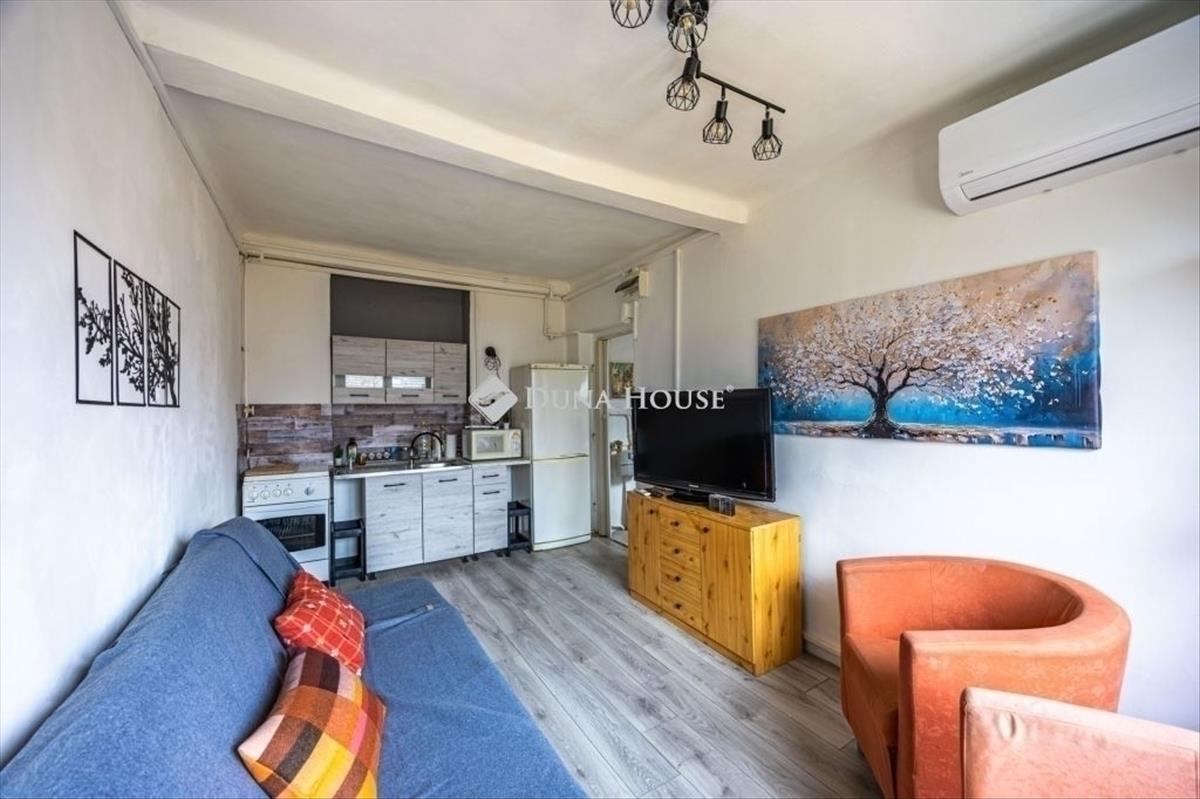 Az elmúlt években több felújításon átesett (új nyílászárók és konyhabútor, villanyszerelés, hűtő-fűtő klíma és festés) lakás tulajdoni lap szerint 28, valóságban 30 négyzetméteres. 4. emeleti, nagy felületű keleti tájolású ablakai vannak, ezért rendkívül világos. a nappali és hálószobán túl különnyíló WC-vel, kádas fürdőszobával és egy jól használható, tetőablakos, meglepően nagy előszobával rendelkezik. a ház az 1940-es években épült. Jól megközelíthető pincéjében egy száraz, 3 nm-es tároló is tartozik a lakáshoz. Az ablakok a házak közötti fák lombjaira, zöld udvarra nyílnak. Minden egyedi mérőórás, a lakás még külső szigetelést is kapott.