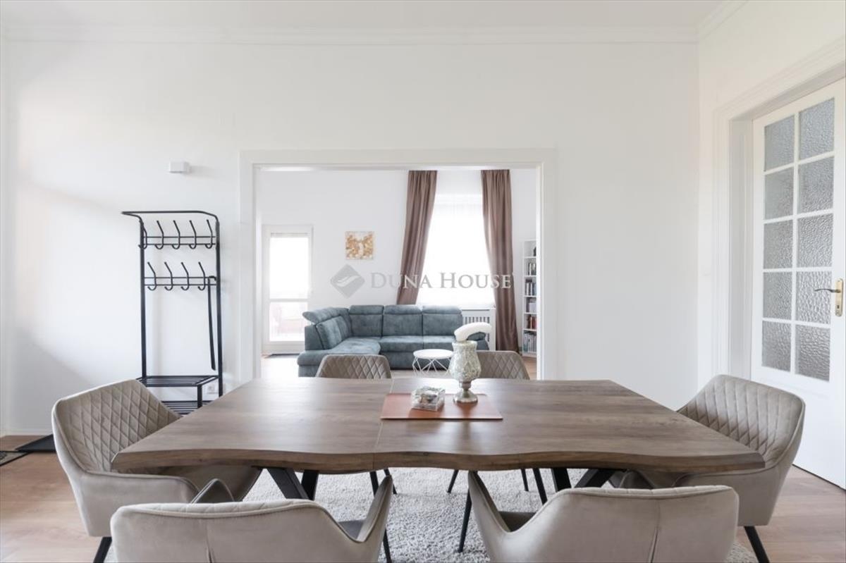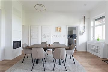 Az egykori Dreher-villa három lakásos épületének emeleti szintjén található ez az egyedülálló otthon, amelyhez nemcsak egy tágas, 111 m2-es hall + 4 szobás, dupla komfortos belső tér, hanem ezen felül két különálló, nagy terasz is tartozik egy a bejáratnál, egy pedig a nappaliból nyílva.