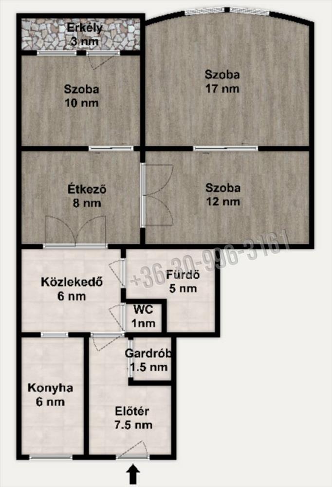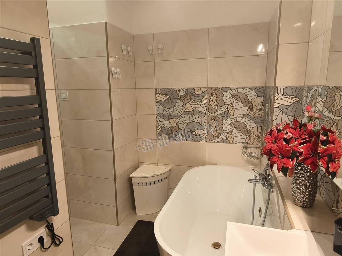 Az ingatlanba lépve egy óriási előtér fogad ahol egy beépített gardróbszekrény és egy épített gardrób is segíti a tárolást. Innen jobbra nyílik az ablakos konyha ahol a beépített gépesített konyhabútor az ár részét képezi. Tovább haladva bal oldalon egymás mellett külön helyiségben található a modern másfél éve felújított kádas fürdő és wc külön helyiségben. a fürdőben a burkolatok és szaniterek is trendi modern stílust képviselnek. Itt található a vadonatúj Ariston villanybojler is. Az előtér folytatása egy közlekedő rész, ahonnan duplaszárnyú ajtón át léphetünk a lakás központi részébe, mely jelenleg étkező. Innen nyílik a szépen berendezett hálószoba, melynek folytatása a 3 nm -es erlély. Az étkező részből nyílik még két szoba, mely régen egy volt, ezáltal akár egy óriási nappalivá visszaalakítható, jelenleg a két gyerek birodalma.