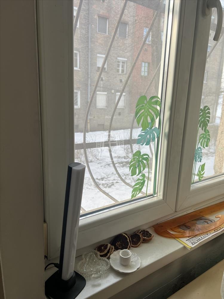 Méretek és a jelenlegi elrendezése az alaprajzon látható, tájolása D-Ny-i, belső parkra néz a lakás.