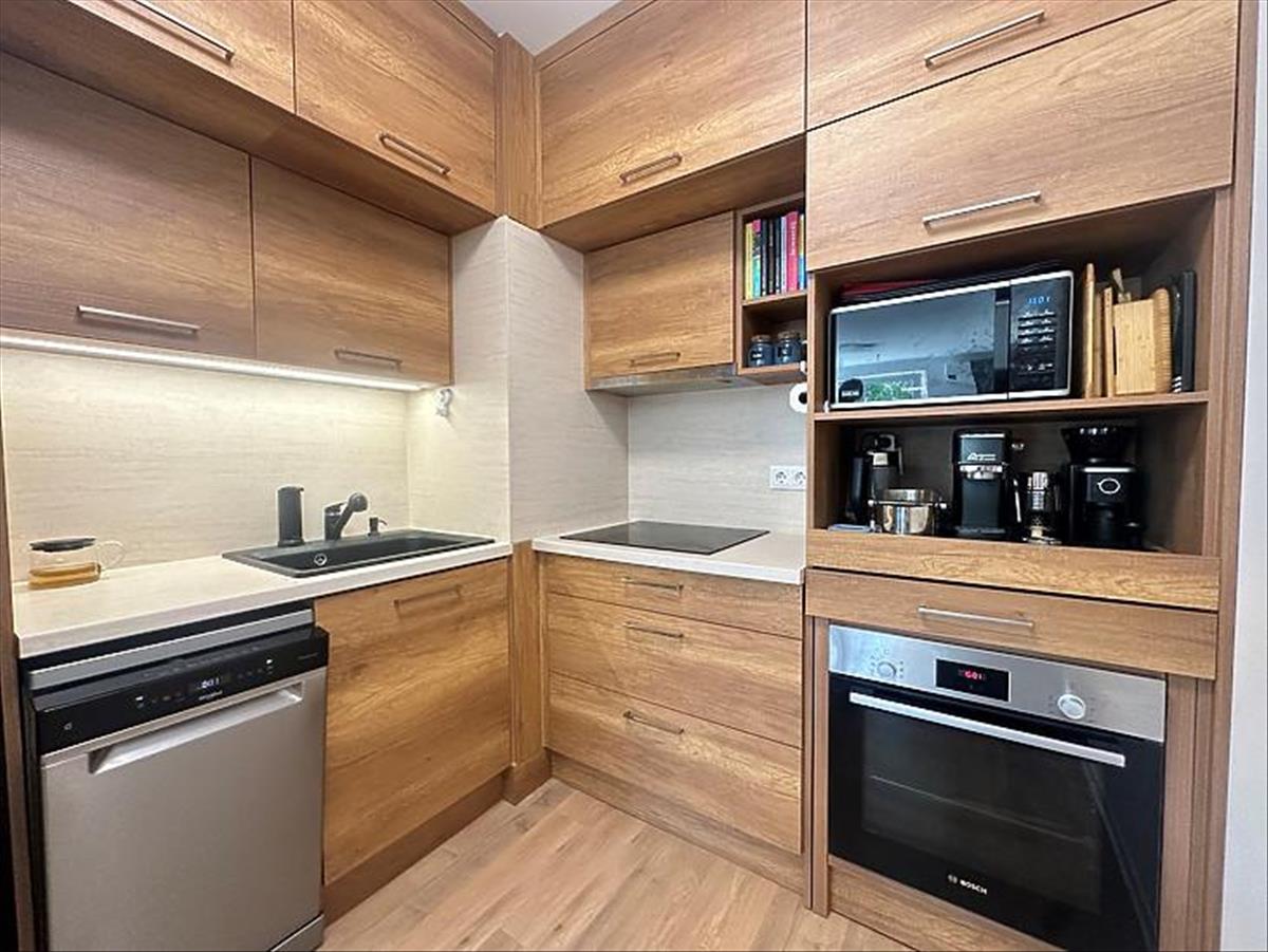 A lakás egyik kiemelt értéke az egységesen, átgondolt koncepció mentén kialakított, beépített bútorzat, amely esztétikailag és funkcionálisan is magas színvonalat képvisel. a konyha teljeskörűen gépesített.