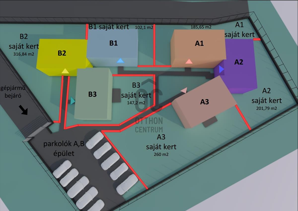 XI. kerület spanyolrét körzetében, csendes mellékutcában, teljesen sík, nagyjából téglalap alakú, 2000 m2 telken épülő, 2x3 épületből álló, sorházi társasházban kínálunk eladásra, 6 db saját kertre néző, belső 2 szintes, 120 m2-es (7 m2 terasz 1/2 méretének a beszámítása mellett. a terasz nélküli nettó főfalakon belüli alapterület 117 m2), 5 szobás, 2 fürdőszobás, 2 db telken belüli felszíni beállóval (+4 Mft/db), és 102 - 260 m2 saját kerttel rendelkező sorházi lakásokat.