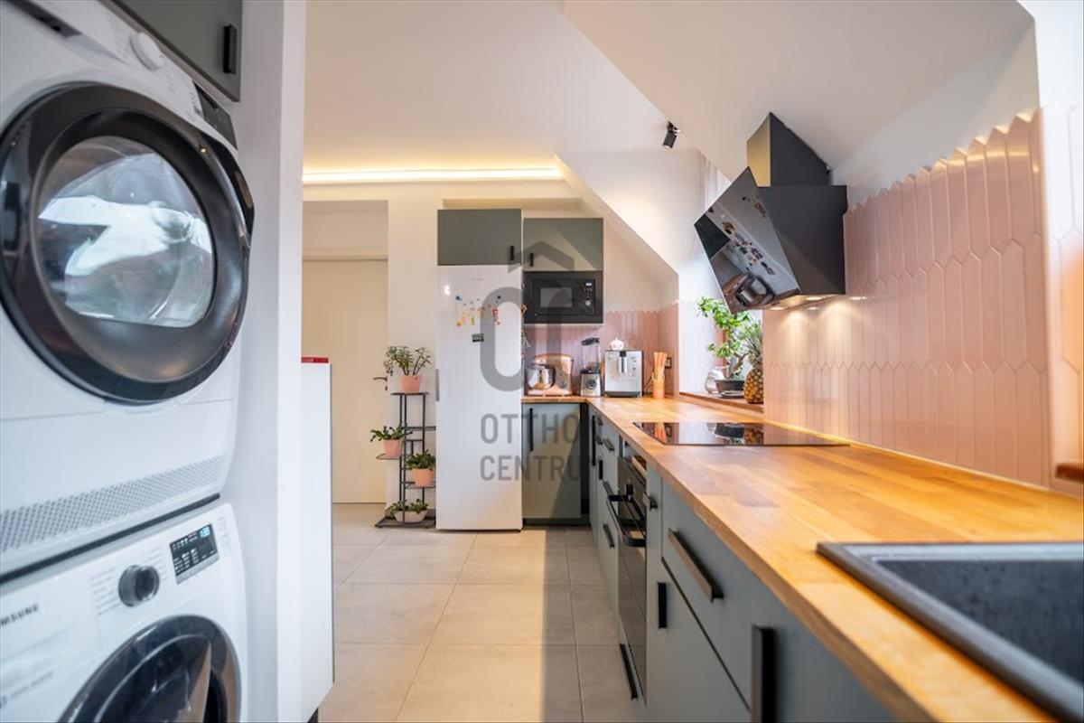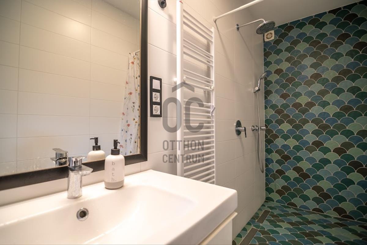 A lakás kivételes hangulatú: minden oldalról fák ölelik körbe, nyáron kevésbé melegszik át, télen pedig kifejezetten harmonikus hőérzetet biztosít.