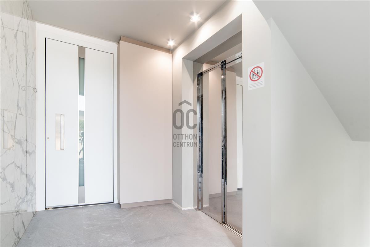 Burkolata Cesare Ceramica nagyméretű lapokkal történt, résfolyókákkal vízelvezetés az üvegkorlátokon belül. a terasz északi elkerített oldalában kapott helyet a napelem rendszer, a másik fele a naposabb oldalon a lépcsőházból elektromosan eltolható üveg tetőablakon közelíthető meg. a teraszon jakuzzi, mini konyha-bár és zuhanyzó kiépítése lehetséges. a tetőterasz a legfelső lakáshoz tartozik.