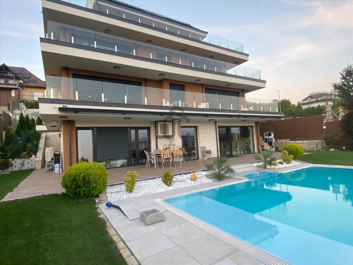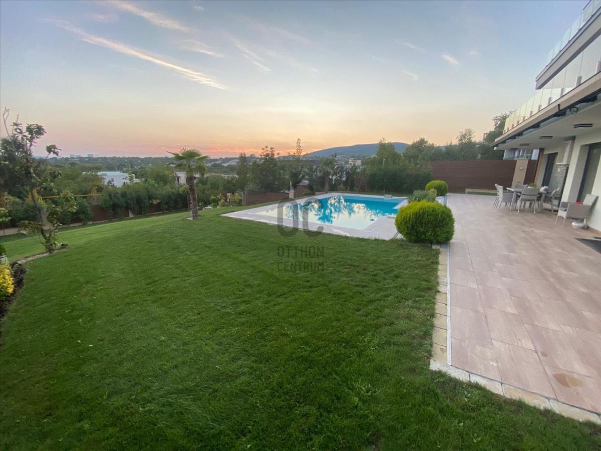 Budapest 11. kerületében, Hosszúréten kínálunk eladásra egy páratlan földszinti, kertkapcsolatos lakást, amely 136 nm ² hasznos alapterülettel, Brutto 256nm és 5 szobával rendelkezik. Az ingatlan legnagyobb előnye a 800 m²-es, kizárólagos használatú saját kert, amely a 120 m²-es teraszról közvetlenül elérhető, valamint egy privát medence is található benne. a ház örök panorámát biztosít, így a csodálatos kilátás egész évben élvezhető.