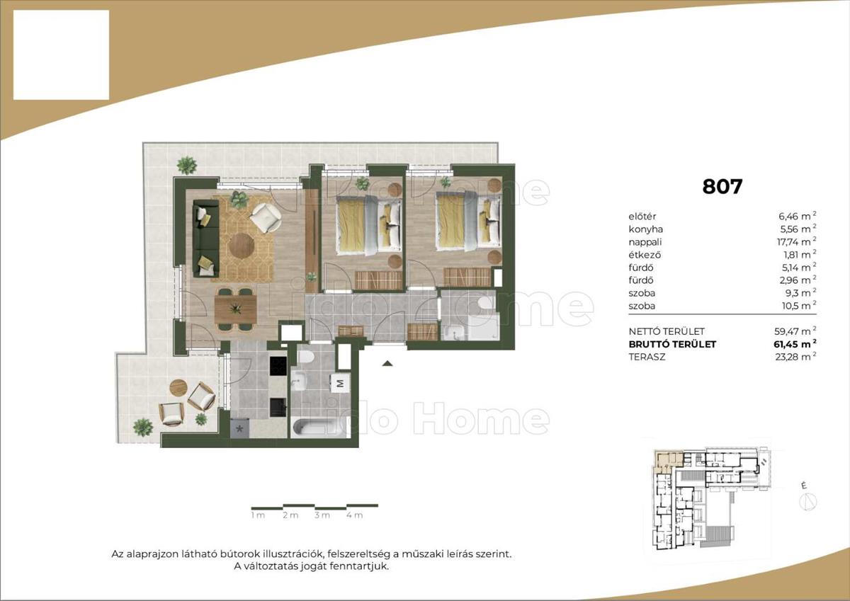 Jelen hirdetésben szereplő 807. Sz. Lakás jellemzői: