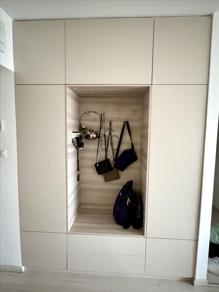 A lakás központja egy tágas, stílusos élettér. a konyha teljesen gépesített (beépített hűtő-fagyasztó, sütő, mikró, mosogatógép, főzőlap, elszívó), külön konyhaszigettel és bőséges tárolóhellyel. Az étkezőhöz egyedi, beépített asztal tartozik. a nappali és az előszoba részen beépített gardrób, TV-konzol és polcrendszer kapott helyet.