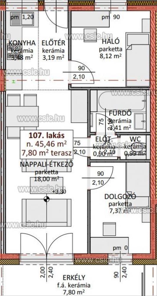•45 m² alapterület + 8 m² erkély