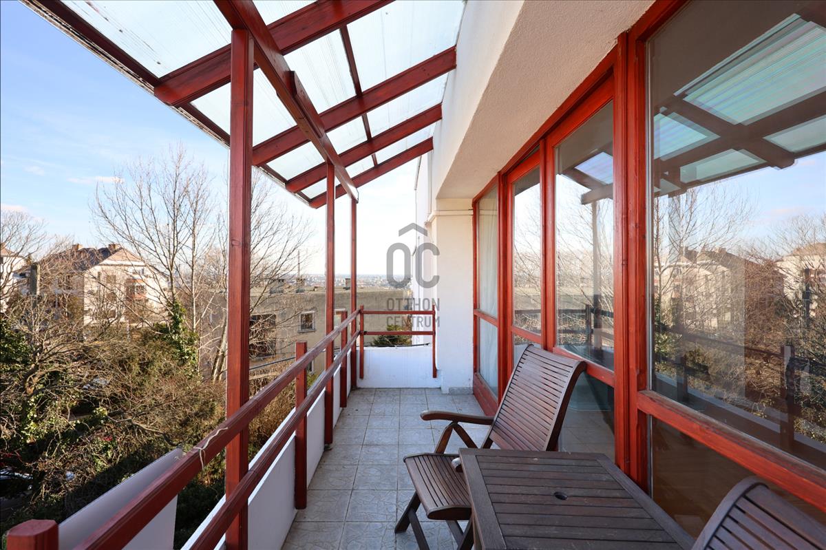 A Gellérthegy zöldövezeti, fás utcájában, a Citadella közvetlen közelében kínálunk megvételre egy legfelső emeleti, világos, kiváló adottságú lakást egy nemrég felújított, kétszintes épületben.