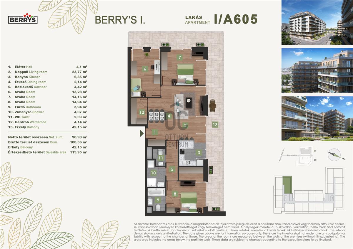 A gyönyörű kilátás nyugalma a városi nyüzsgés harmóniájával. a Berry’s minden lakásához tartozik loggia, erkély, vagy terasz!