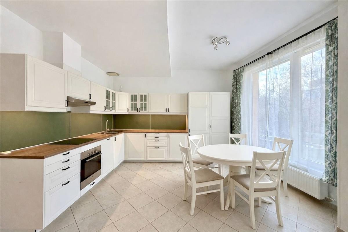 A lakás konyhája tört fehér, klasszikus, provanszi stílusú konyhabútorral és konyhagépekkel felszerelt. Mivel a nappali déli fekvésű, ezért a nyári melegben légkondíciónáló áll rendelkezésre, amivel kellemesebbé tehetjük a belső hőmérsékletet. Az ingatlan majdnem 3 méteres belmagassága kifejezetten növeli a tágasság érzetét. a folyamatos karbantartásnak köszönhetően a lakás jó állapotú, akár azonnal költözhető. a társasházat körülvevő utcákban nincsen átmenő forgalom, emiatt a lakás kifejezetten csendes. Az ablakokon beépített szúnyogháló, redőnyök, az erkélyen motoros árnyékoló került beépítésre.