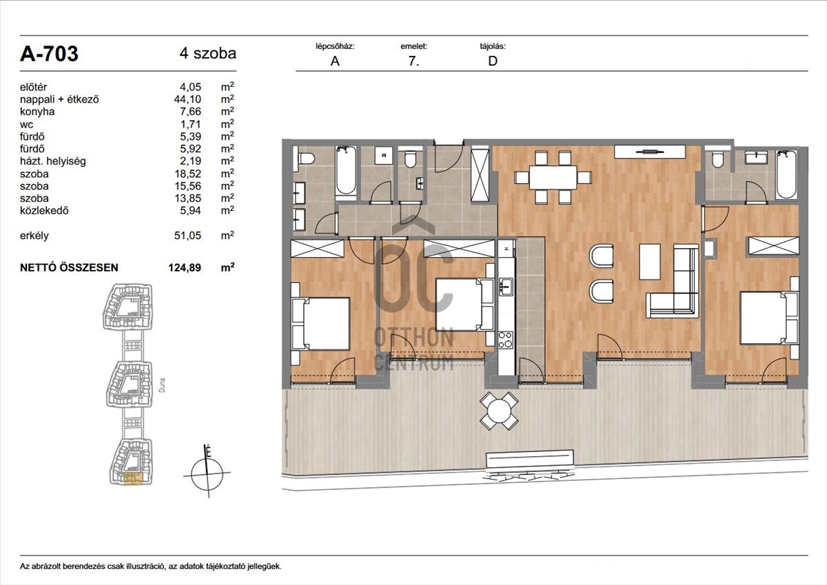 A teraszról a Duna látványa, a vízpart halk morajlása és a modern városi környezet tökéletes harmóniája adja az itt élők mindennapjainak különleges atmoszféráját.