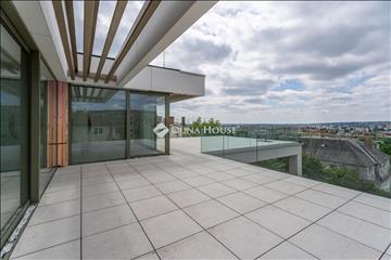 Lakás jellemzők Netto lakótér: 154, 35 m² Kilátásra hangolt, 135, 37 m²-es terasz: két erkély (14, 57 m² + 21, 48 m²) a nappali és a hálózónák teljes szeparációja garantálja a privát nyugalmat, miközben a város fényei és a hegy lankái minden órában lenyűgöznek.