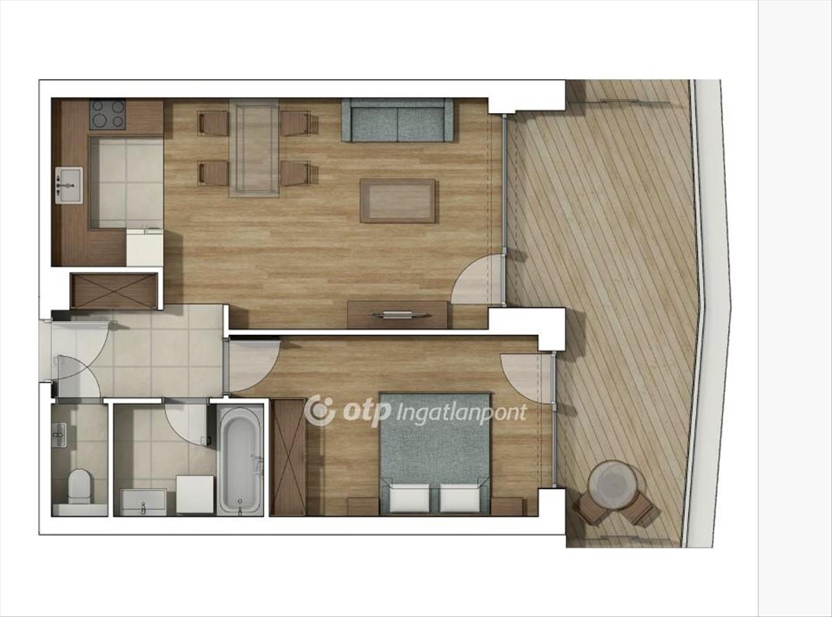 Nettó 48, 45 m2 + 17, 4 m2 erkély.