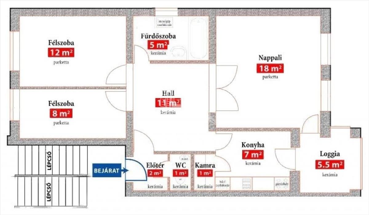A lakás helyiségei: