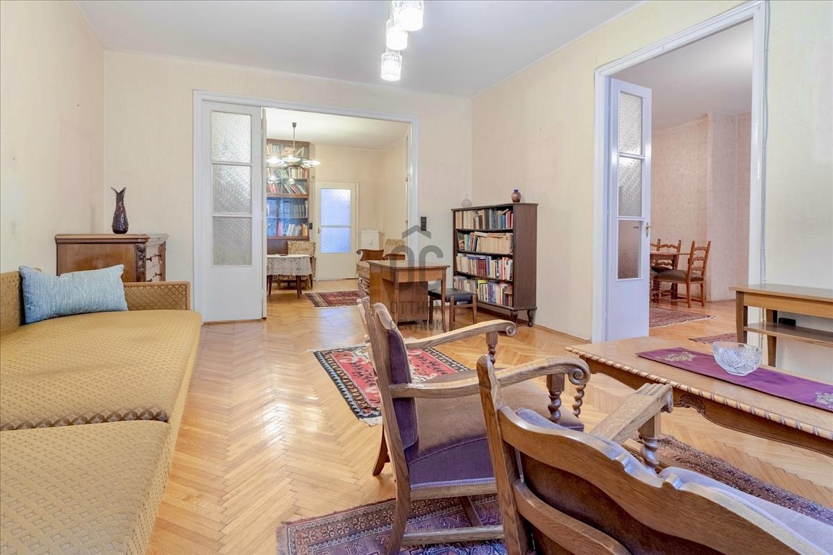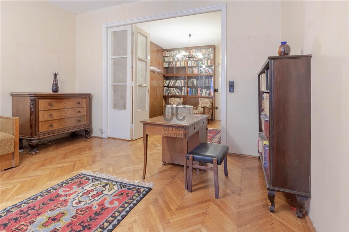 - 1. emeleti, 106 m2-es, 3 szoba + hallos, világos, jó elosztású, légkondicionálóval felszerelt átlagos állapotú nagypolgári ingatlan.