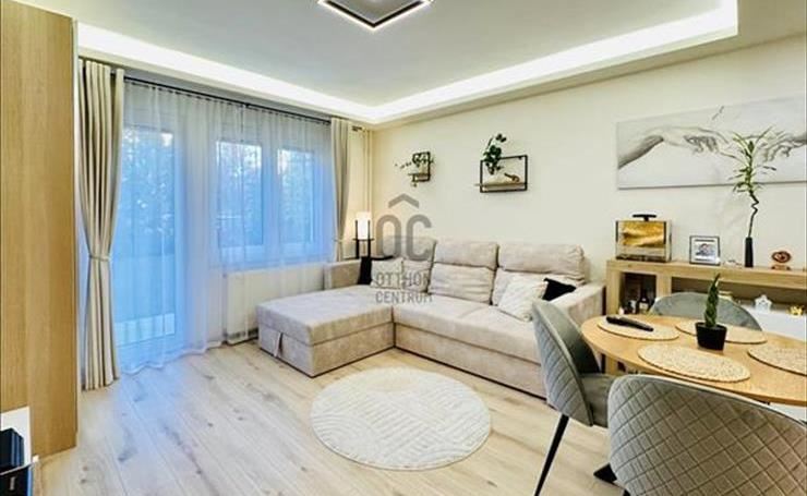 A lakás teljesen berendezve és gépesítve eladó – benne marad a kihúzható kanapéágy, étkezőasztal székekkel, beépített konyhabútor Electrolux gépekkel (indukciós főzőlap, sütő, hűtő, páraelszívó, mosogatógép), szekrények, valamint Midea hűtő-fűtő klíma és elektromos redőnyök is.