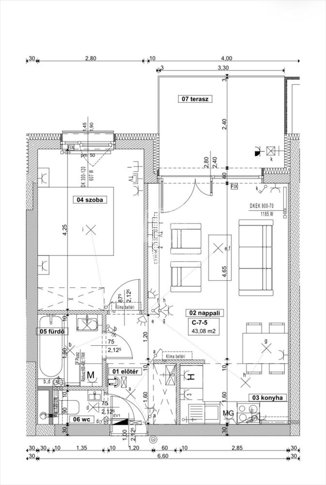 Lakás 43, 08 nm , terasz 8, 48 nm