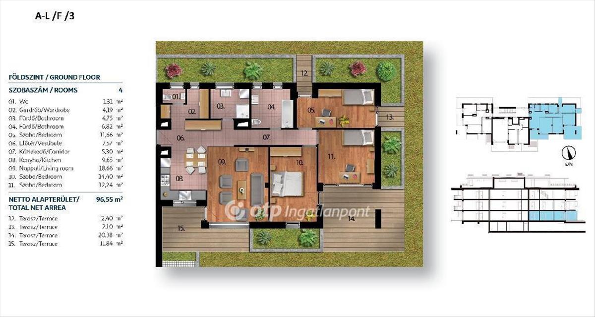 Lakások mérete: 43 nm-es, 1, 5 szobás lakástól a 150 nm-es, 5 szobás és a tetőteraszos, exkluzív penthouseig.