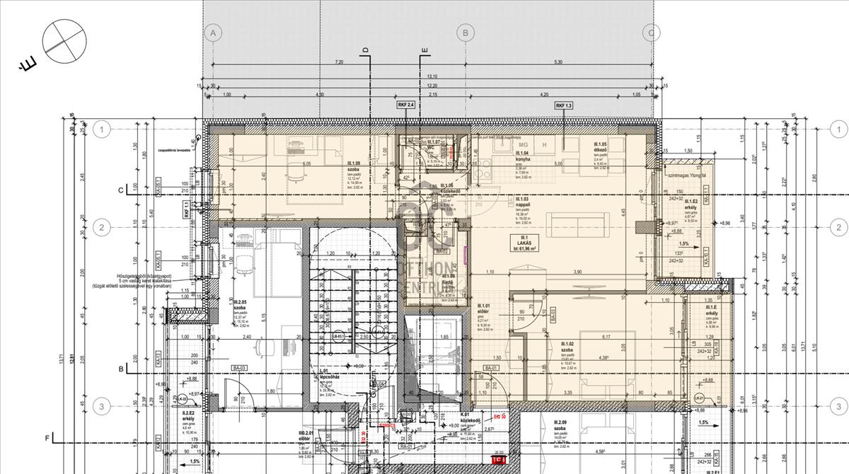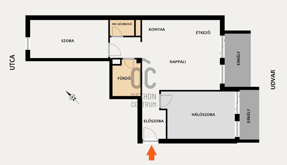 Elrendezés: Nappali + 2 hálószoba, dupla erkély (5 m2 és 4 m2)