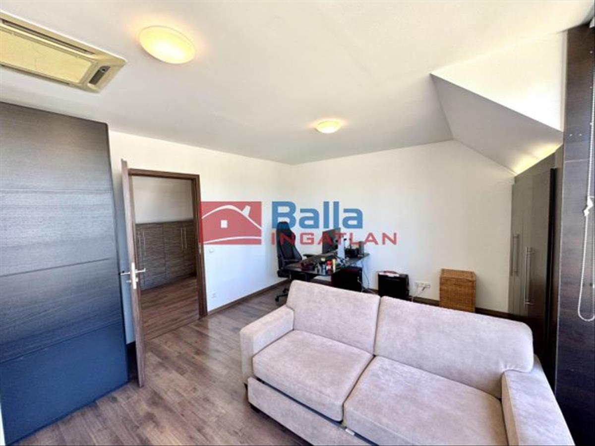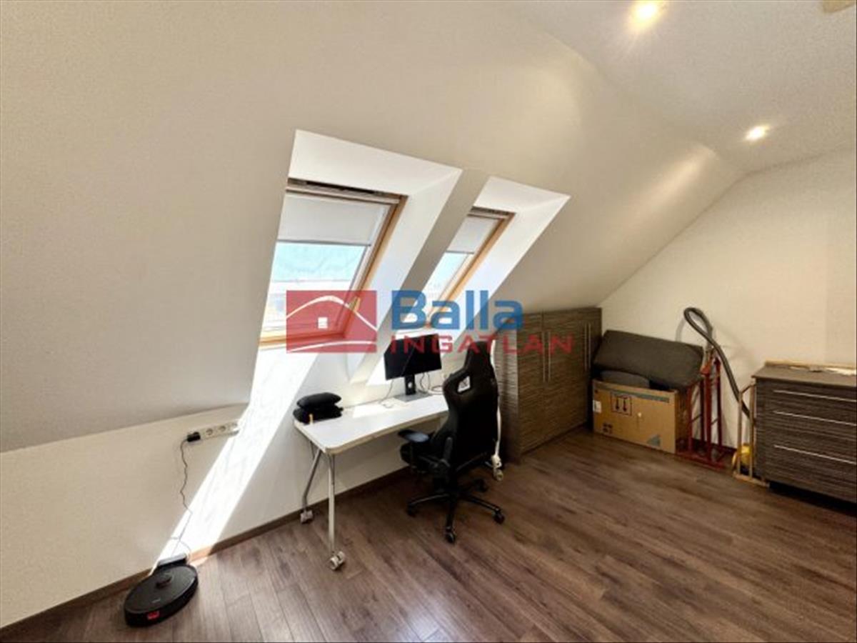 A nagy lakásban található egy nagyon hangulatos 28 m2-es amerikai konyhás nappali egy beépített konyhabútorral, gépekkel, melyek a vételárat képezik (ahogy minden beépített bútor). Innen jutunk ki a 24 m2-es rendkívül napos teraszra, ami nagyon jól berendezhető akár jakuzzival, kerti bútorokkal, napernyőkkel, grillsütővel. Legnagyobb szobája 20 m2-es, mellette található egy 18 m2-es és végül egy 10 m2-es. Mindegyik külön nyílik a közlekedőből. a sok beépített szekrénynek köszönhetően nagyon jól ki vannak használva a nem annyira hasznos alapterületek is. a konyha mellett található egy (régen) kis konyha szintén, ez átalakítható akár egy kis dolgozószobának is vagy gardróbnak. Fürdő, wc külön és egyben is. a lépcsőházban kettőt lépve átjutunk a kis lakásba, mely egy 23 m2-es amerikai konyhás nappaliból, egy 6 m2-es szobából és egy fürdőszobából áll.