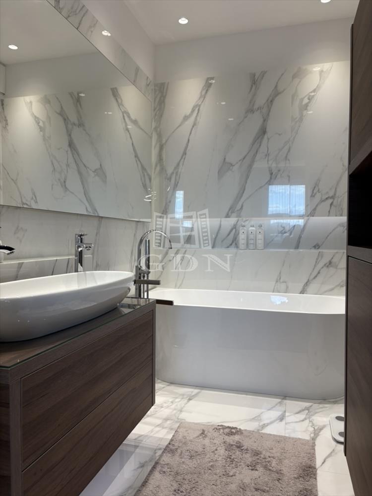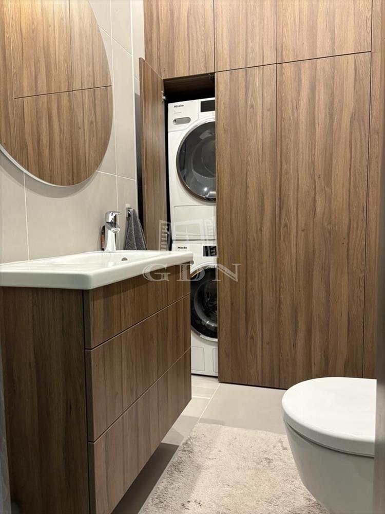 A lakás három szobával rendelkezik, 2 hálószobával az egyikhez egy nagy, nyitott fürdő kapcsolódik kényelmes káddal. a lakás távolabbi részén egy további fürdő található zuhannyal, mosdóval és WC-vel, valamint egy külön mellékhelyiség mosdóval, WC-vel és beépített Miele mosó- és szárítógépekkel.