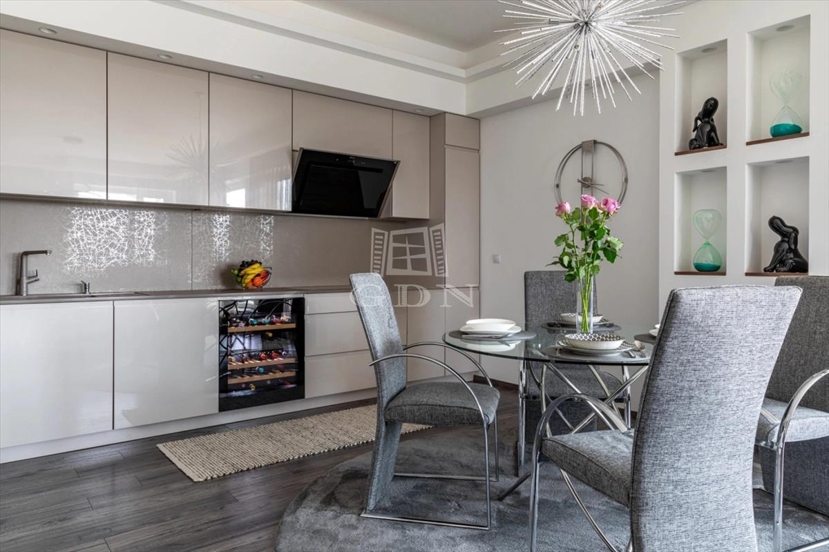 A konyha tágas, prémium kő munkalappal, Miele/Neff gépekkel és rengeteg tárolóhellyel felszerelt. a beépített bútorok között megtalálható egy megvilágított bárszekrény, két olasz design gardrób (összesen 11 méter hosszan) homokfúvott üveggel és belső világítással, valamint a fürdőkbe és hálóba tervezett egyedi bútorok, sminkasztal, Wertheim széf, design radiátorok, továbbá Natuzzi franciaágy és kanapé. a lakás okosotthon-rendszerrel, telefonról vezérelhető riasztóval, elektromos redőnyökkel és két televízióval rendelkezik.