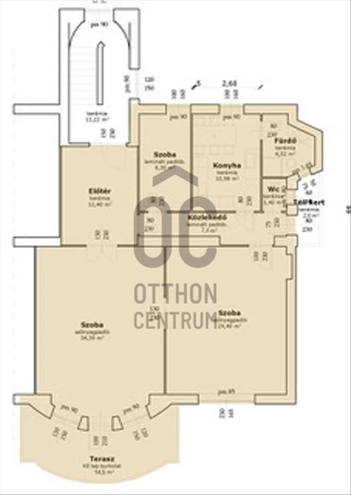 A lakás nettó 115, bruttó 125 nm alapterületű.