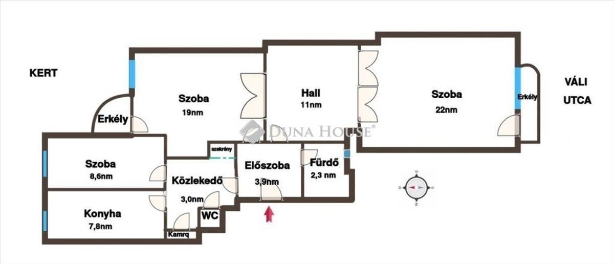 Az elrendezés jól átgondolt és rugalmasan alakítható: jelenleg három külön nyíló szoba áll rendelkezésre, azonban az ingatlan adottságai lehetővé teszik akár egy negyedik szoba kialakítását is. Ezáltal ideális választás lehet nagyobb családok számára, illetve befektetőknek is, akik értéknövelő átalakításban gondolkodnak.