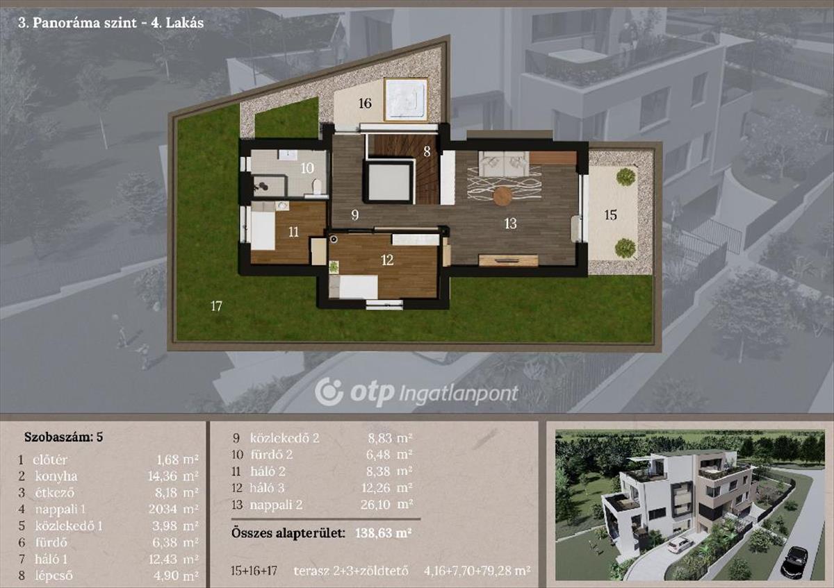 138, 63 nm (2 nappali + 3 hálószoba).
