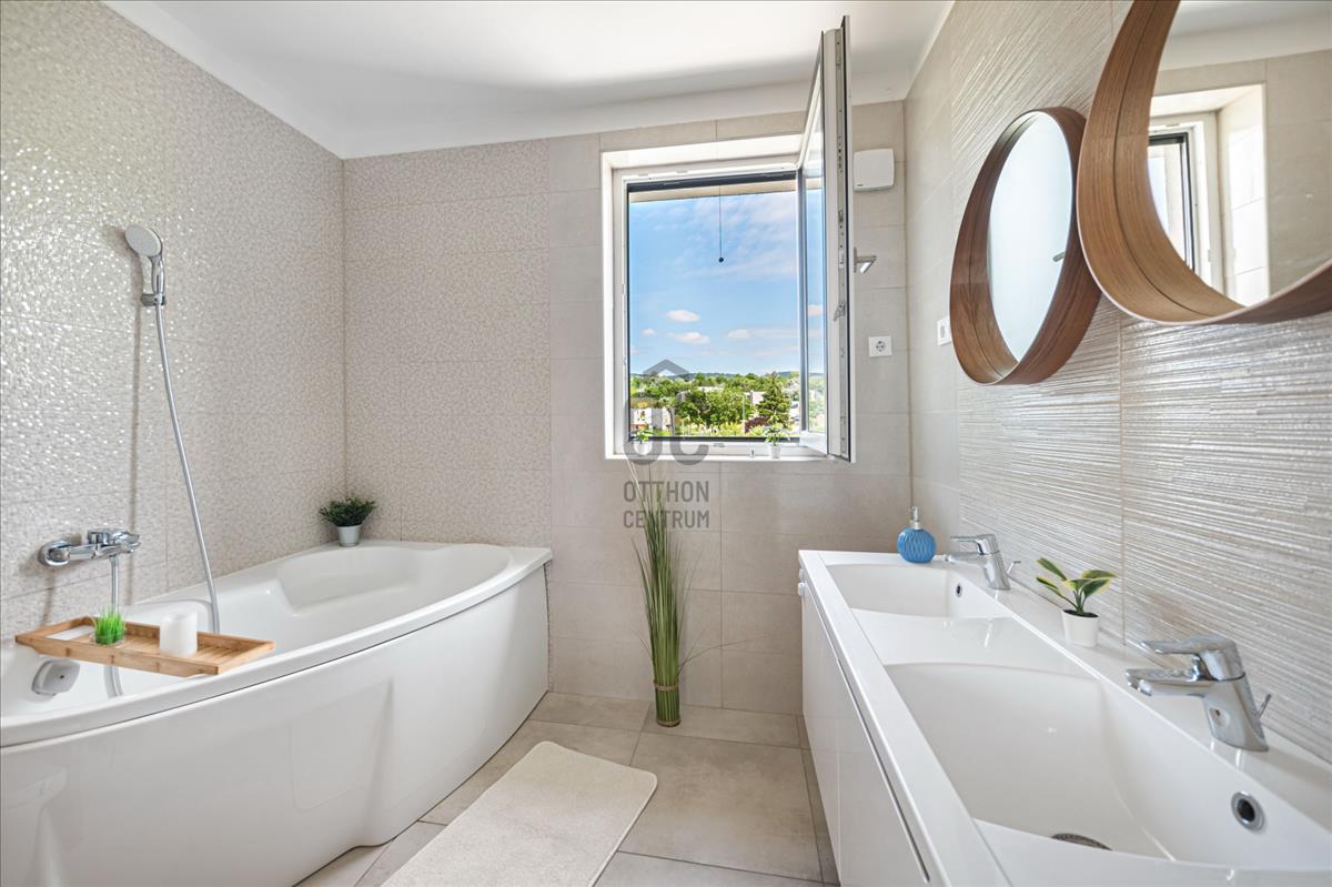 Dél–nyugati tájolásának köszönhetően egész nap világos, minden helyiség ablakos. Háromrétegű nyílászárók, elektromos redőnyök és szúnyoghálók biztosítják a kényelmet.