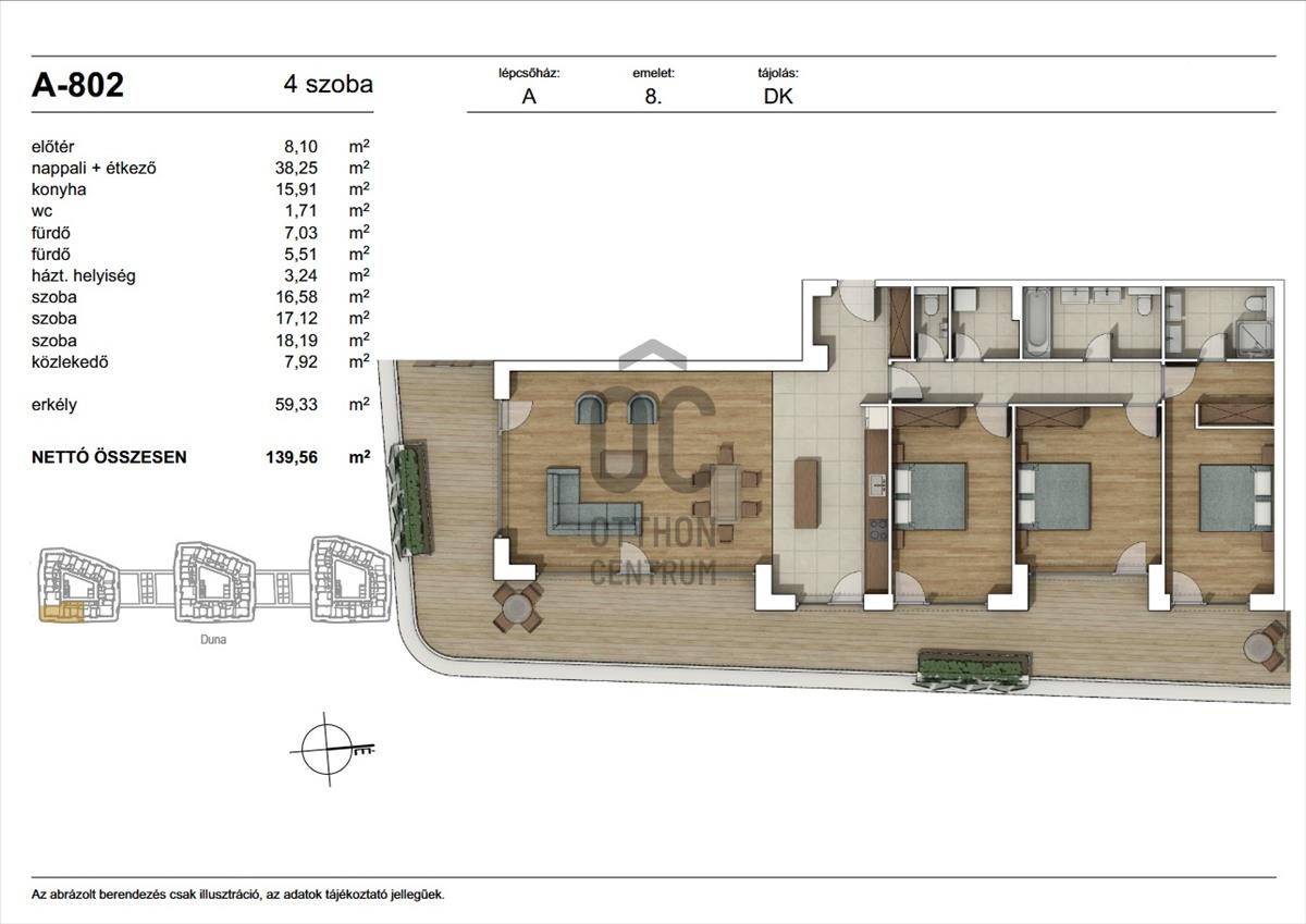 A teraszról a Duna látványa, a vízpart halk morajlása és a modern városi környezet tökéletes harmóniája adja az itt élők mindennapjainak különleges atmoszféráját.